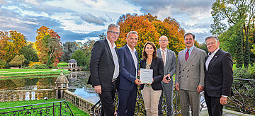 Rita Schwarzelühr-Sutter hat vier Förderschecks an die Städte Baesweiler und Meerbusch sowie die Stiftung Schloss Dyck und dem Bundesligisten Borussia Mönchengladbach überreicht. Mit Hilfe der Förderung werden konkrete Maßnahmen finanziert, um die Lebensqualität in der Region zu sichern und weiterzuentwickeln. Die Projekte werden im Rahmen der Förderrichtlinie "Kommunale Modellvorhaben zur Umsetzung der ökologischen Nachhaltigkeitsziele in Strukturwandelregionen (KoMoNa) vom Bundesumweltministerium mit insgesamt fünf Millionen Euro gefördert.