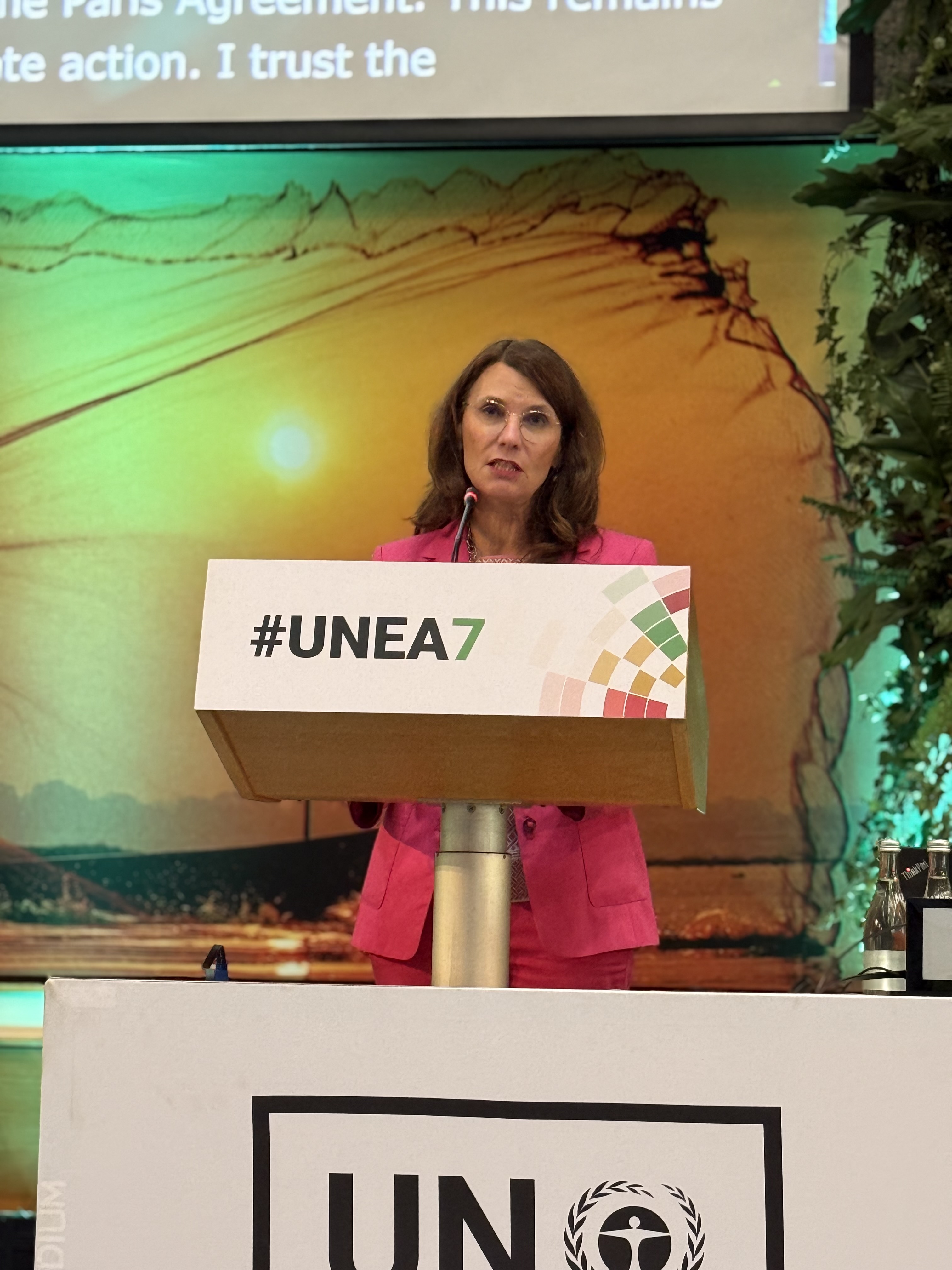 • Rita Schwarzelühr-Sutter stellt auf der UN-Umweltversammlung UNEA-7 in Nairobi das deutsche National Statement vor.
