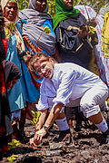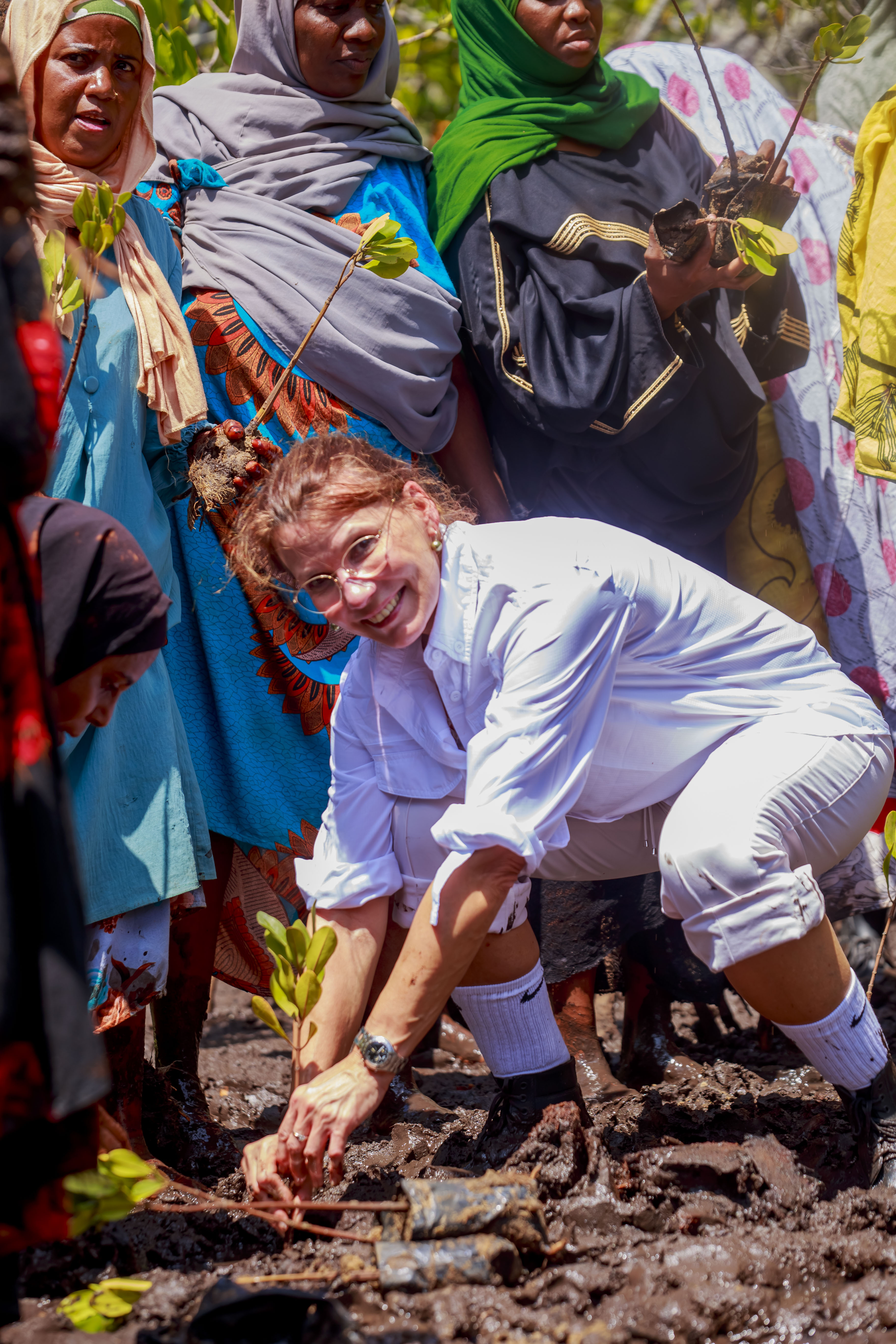 • Rita Schwarzelühr-Sutter pflanzt einen Mangrovenbaum.