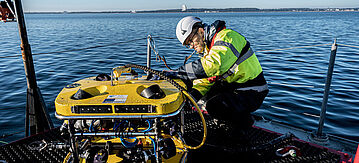 - Die eingesetzte Technologie funktioniert bereits jetzt sehr gut. Für die speziellen Erfordernisse in Versenkungsgebieten mit dichter Belegung von Munitionsaltlasten muss sie aber angepasst und auch noch weiterentwickelt werden – etwa durch feinfühligere Greifer und eine bessere Ausleuchtung der Arbeitsbereiche.