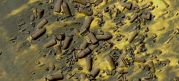 - Munition liegt auch in der Ostsee nicht nur sichtbar auf dem Meeresboden. In einigen Gebieten ergaben magnetische Untersuchungen erheblich mehr Anomalien, als andere bildgebende Verfahren bislang aufzeigen konnten: Ein Teil der Munition ist demnach metertief im Sediment versunken. Wie groß der Anteil im Verhältnis zur sichtbaren Munition ist, muss noch erforscht werden. Dafür ist eine detailliertere Vorarbeit im Rahmen der Detektion erforderlich, um das für die Bergungsarbeiten grundlegende Lagebild zu verbessern.