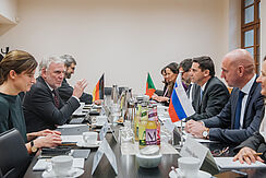Staatssekretär Jochen Flasbarth empfing am 24. Januar die Staatssekretäre aus dem portugiesischen sowie dem slowenischen Umweltministerium in Berlin. Im Fokus stand hierbei der Austausch über den 18-monatigen Vorsitz im Rat der EU, den die drei Länder in der Reihenfolge Deutschland, Portugal und Slowenien ab Mitte 2020 als sogenanntes "Trio" innehaben.