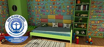 Um Kinder in ihren eigenen vier Wänden besser zu schützen, muss niemand Chemiker oder Chemikerin werden. Dafür gibt es den Blauen Engel, der Eltern eine verlässliche Orientierung bietet, um emissions- und schadstoffarme Produkte zu erkennen. Bei der Erarbeitung der Kriterien steht nicht nur der Umweltschutz im Fokus, sondern auch der Schutz der Gesundheit. Mit strengen Anforderungen an den Gehalt von Schadstoffen in den Produkten (z. B. Lösemittel und Weichmacher bei Wandfarben) sollen die gesundheitlichen Gefahren, die von Produkten ausgehen können, minimiert werden.