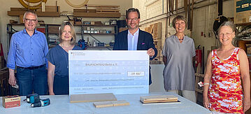 Florian Pronold übergibt Förderscheck an BAUFACHFRAU Berlin e.V. in Pankow/Weißensee