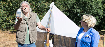 Die Krefelder Insektenforscher werden ihre Forschung zum Ausmaß und den Ursachen des Insektensterbens in den nächsten Jahren deutlich ausweiten können. Bundesumweltministerin Svenja Schulze überreichte heute im Rahmen ihrer Sommerreise einen Bewilligungsbescheid an Dr. Martin Sorg vom Entomologischen Verein Krefeld e. V. Das bereits seit 2016 laufende gemeinsame Forschungsvorhaben wird von ursprünglich 2018 bis 2021 verlängert, ausgeweitet und mit zusätzlichen Mitteln in Höhe von 150.000 Euro versehen. Im Projekt werden aktuelle und historische Insektenproben der Krefelder Insektenforscher tiefer analysiert, um mehr über das Insektensterben und die Ursachen zu erfahren.