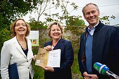 Heute hat Bundesumweltministerin Svenja Schulze eine Wildbienenpatenschaft übernommen. Im Wildbienenschaugarten in Berlin-Treptow nahm die Ministerin ihre Urkunde von der Stiftung für Mensch und Umwelt in Empfang. Rund die Hälfte aller Wildbienenarten stehen auf der Roten Liste. Ein gezielter Schutz von Wildbienen, ihrer Nahrungsgrundlagen und Lebensräume ist daher dringend nötig.