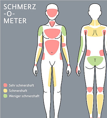 Gehe über die Farbfläche, um zu sehen, wie schmerzempfindlich verschiedene Körperstellen sind.
