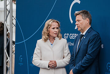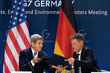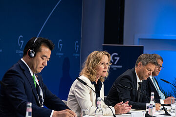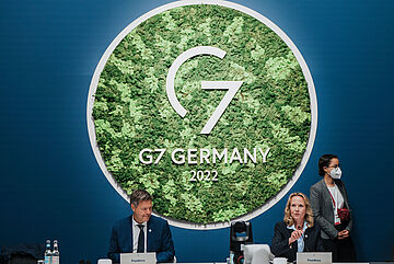 G7-Mediathek Headerbild Urheberinformationen zum Bild anzeigen G7-Mediathek Hier finden Sie gesammelte Medien zur G7-Fachminister*innen-Konferenz Umwelt, Klima, Energie. Informationen Deutsche G7-Präsidentschaft 2022 "Fortschritt für eine gerechte Welt" Abschluss-Pressekonferenz am 27. Mai Urheberinformationen zum Bild anzeigen über Statement von Steffi Lemke Urheberinformationen zum Bild anzeigen über Statement von Robert Habeck über Statement von Alok Sharma Urheberinformationen zum Bild anzeigen über Statement von Toshitaka Ooka Urheberinformationen zum Bild anzeigen über Statement von Hosoda Kenichi Impressionen Vorheriges Element anzeigenNächstes Element anzeigen Urheberinformationen zum Bild anzeigen BMUV / Toni Kretschmeröffnet Bild in einer vergrößerten Darstellung Urheberinformationen zum Bild anzeigen Bundesumwelt- und verbraucherschutzministerin Steffi Lemke und Bundesminister für Wirtschaft und Klimaschutz Robert Habeck eröffnen das G7-Treffen der Klimaschutz-, Energie- und Umweltminister*innen.BMUV/Sascha Hilgersöffnet Bild in einer vergrößerten Darstellung Urheberinformationen zum Bild anzeigen Vom 26. bis 27. Mai berieten die Klimaschutz-, Energie- und Umweltministerinnen und -minister der G7 Staaten gemeinsam in Berlin über Auswege aus der Klima-, Biodiversitäts- und Verschmutzungskrise.BMUV/Sascha Hilgersöffnet Bild in einer vergrößerten Darstellung Urheberinformationen zum Bild anzeigen John Kerry, Sondergesandter des US-Präsidenten für das Klima, nahm als Vertreter der Vereinigten Staaten von Amerika teil.BMUV/Sascha Hilgersöffnet Bild in einer vergrößerten Darstellung Urheberinformationen zum Bild anzeigen Frans Timmermans, Exekutiv-Vizepräsident für einen europäischen Grünen DealBMUV/Sascha Hilgersöffnet Bild in einer vergrößerten Darstellung Urheberinformationen zum Bild anzeigen Virginijus Sinkevicius, Kommissar für Umwelt der Europäischen UnionBMUV/Sascha Hilgersöffnet Bild in einer vergrößerten Darstellung Urheberinformationen zum Bild anzeigen Beim G7 Treffen ging es im Klimaschutz, Umweltschutz und Energiebereich um vielfältige Themen.BMUV/Sascha Hilgersöffnet Bild in einer vergrößerten Darstellung Urheberinformationen zum Bild anzeigen Die G7-Staaten stehen fest und bestärkt in ihrem Kurs zu ihren in Paris und Glasgow eingegangenen Klimaschutzverpflichtungen und betonen die Bedeutung einer beschleunigten Energiewende als zentralen Beitrag sowohl für mehr Klimaschutz als auch für mehr Energiesicherheit.BMUV/Sascha Hilgersöffnet Bild in einer vergrößerten Darstellung Urheberinformationen zum Bild anzeigen Der Kampf gegen die Verschmutzungskrise und das massenhafte Artenaussterben steht ebenso auf der G7-Agenda. Ziel ist es, ein klares Bekenntnis zum Meeresschutz, zum Biodiversitätsschutz und für ein globales Plastikmüllabkommen abzugeben.BMUV / Toni Kretschmeröffnet Bild in einer vergrößerten Darstellung Urheberinformationen zum Bild anzeigen Annalena Baerbock, Bundesministerin des Auswärtigen, war auch vor Ort.BMUV/Sascha Hilgersöffnet Bild in einer vergrößerten Darstellung Urheberinformationen zum Bild anzeigen Beim Treffen der G7 Klimaschutz-, Energie und Umweltminister nahmen Akteurinnen und Akteure aus sieben Staaten teil.BMUV/Sascha Hilgersöffnet Bild in einer vergrößerten Darstellung Urheberinformationen zum Bild anzeigen Bei der Abschluss-Pressekonferenz stellten die G7 Klimaschutz-, Energie und Umweltminister ihre Abschlusserklärung mit erstmaligem Bekenntnis zum Kohleausstieg vor.BMUV/Sascha Hilgersöffnet Bild in einer vergrößerten DarstellungWeitere Bilder finden Sie in der Press Area des BMUV. Delegation-Doorstep-Statements am 26. Mai Vorheriges Element anzeigenNächstes Element anzeigen Urheberinformationen zum Bild anzeigen Bundesumwelt- und Verbraucherschutzministerin über Steffi Lemke Urheberinformationen zum Bild anzeigen Bundesminister für Wirtschaft und Klimaschutz über Robert Habeck Urheberinformationen zum Bild anzeigen Minister for Energy Transition über Agnès Pannier-Runacher Urheberinformationen zum Bild anzeigen COP26 President über Alok Sharma Urheberinformationen zum Bild anzeigen Minister of State for Energy, Clean Growth and Climate Change über Greg Hands Urheberinformationen zum Bild anzeigen Minister of State for the International Environment über Lord Goldsmith of Richmond Park Urheberinformationen zum Bild anzeigen Minister of Natural Resources über Jonathan Wilkinson Urheberinformationen zum Bild anzeigen Minister of Environment and Climate Change über Steven Guilbeault Urheberinformationen zum Bild anzeigen State Minister of the Environment über Toshitaka Ooka Urheberinformationen zum Bild anzeigen State Minister for Economic Affairs, Trade, Industry über Hosoda Kenichi Urheberinformationen zum Bild anzeigen United States Deputy Secretary of Energy über David M. Turk Urheberinformationen zum Bild anzeigen Administrator of the Environmental Protection Agency über Michael S. Regan Urheberinformationen zum Bild anzeigen Special Presidential Envoy for Climate über John Kerry Europäische Union Urheberinformationen zum Bild anzeigen Executive Vice-President and Commissioner for European Green Deal über Frans Timmermans Urheberinformationen zum Bild anzeigen Commissioner for Energy über Kadri Simson Urheberinformationen zum Bild anzeigen Commissioner for Environment, Oceans and Fisheries über Virginijus Sinkevicius Indonesien Urheberinformationen zum Bild anzeigen Minister of the Environment and Forest and Climate Change über Dr. Siti Nurbaya Urheberinformationen zum Bild anzeigen Minister of Energy and Mineral Resources über Arifin Tasrif Interview Urheberinformationen zum Bild anzeigen über Steffi Lemke zur G7-Konferenz: "Wollen Erneuerbare zu Hauptenergien machen"
