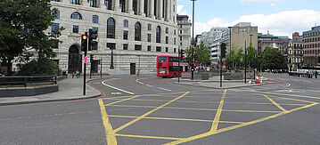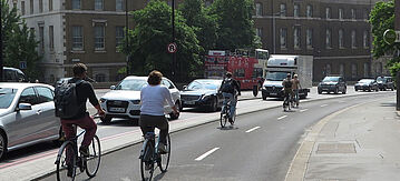 Der neue Ost-West-Radweg führt auf mehreren Kilometern durch die Londoner Innenstadt. Das Besondere: Der Radweg ist zusammenhängend ohne Lücken gebaut, sehr breit und vor allem separiert vom Autoverkehr.